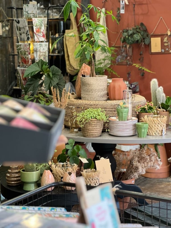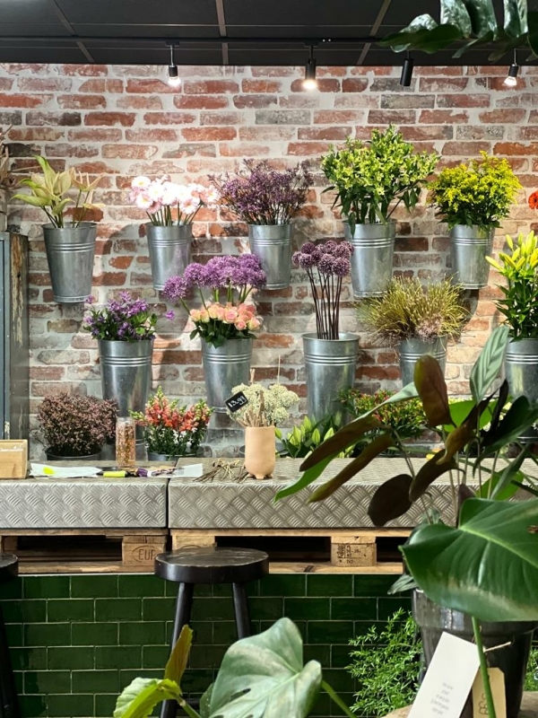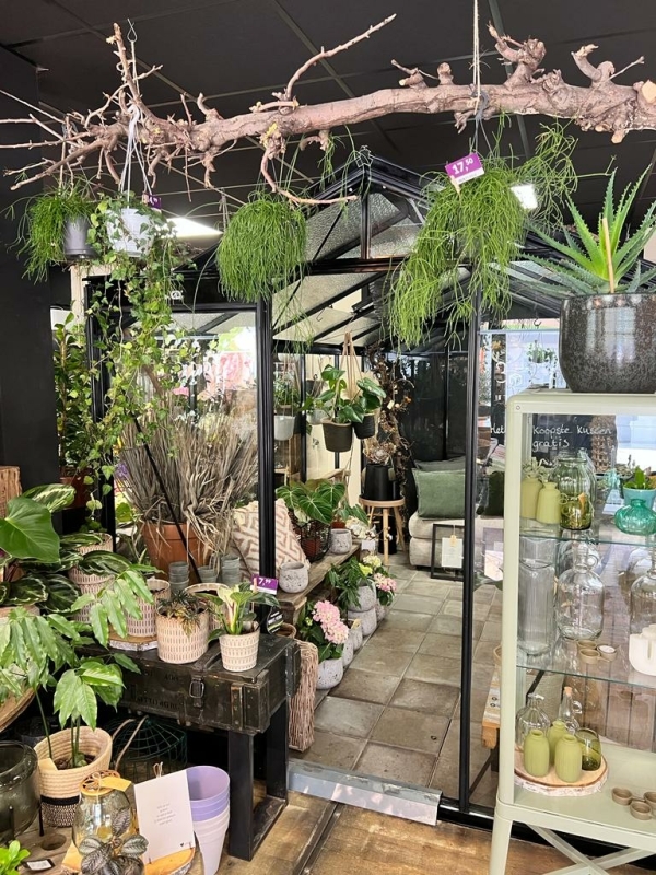 The first thing that catches your eye is the super cool and hip atmosphere, completely in line with the latest trends. Right in the center of the store, you will even find a greenhouse filled with even more amazing products. The brick wall adorned with tin buckets overflowing with colorful flowers, the dark green tiles, the black accents, and the warm terracotta wall color make this store contemporary, trendy, and one-of-a-kind. Mother Ineke and daughter Annika have truly created a beautiful store that is beloved by many.